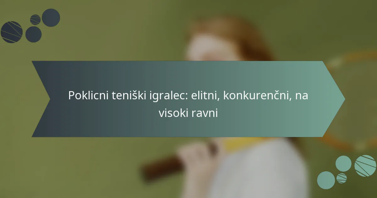 Profesionalni teniški igralec na elitni ravni se odlikuje po izjemnih veščinah, fizični pripravljenosti in globokem razumevanju igre. Ti športniki tekmujejo na najvišjih ravneh, pogosto sodelujejo na mednarodnih turnirjih in dosegajo uvrstitve, ki odražajo njihovo predstavo in sposobnosti.